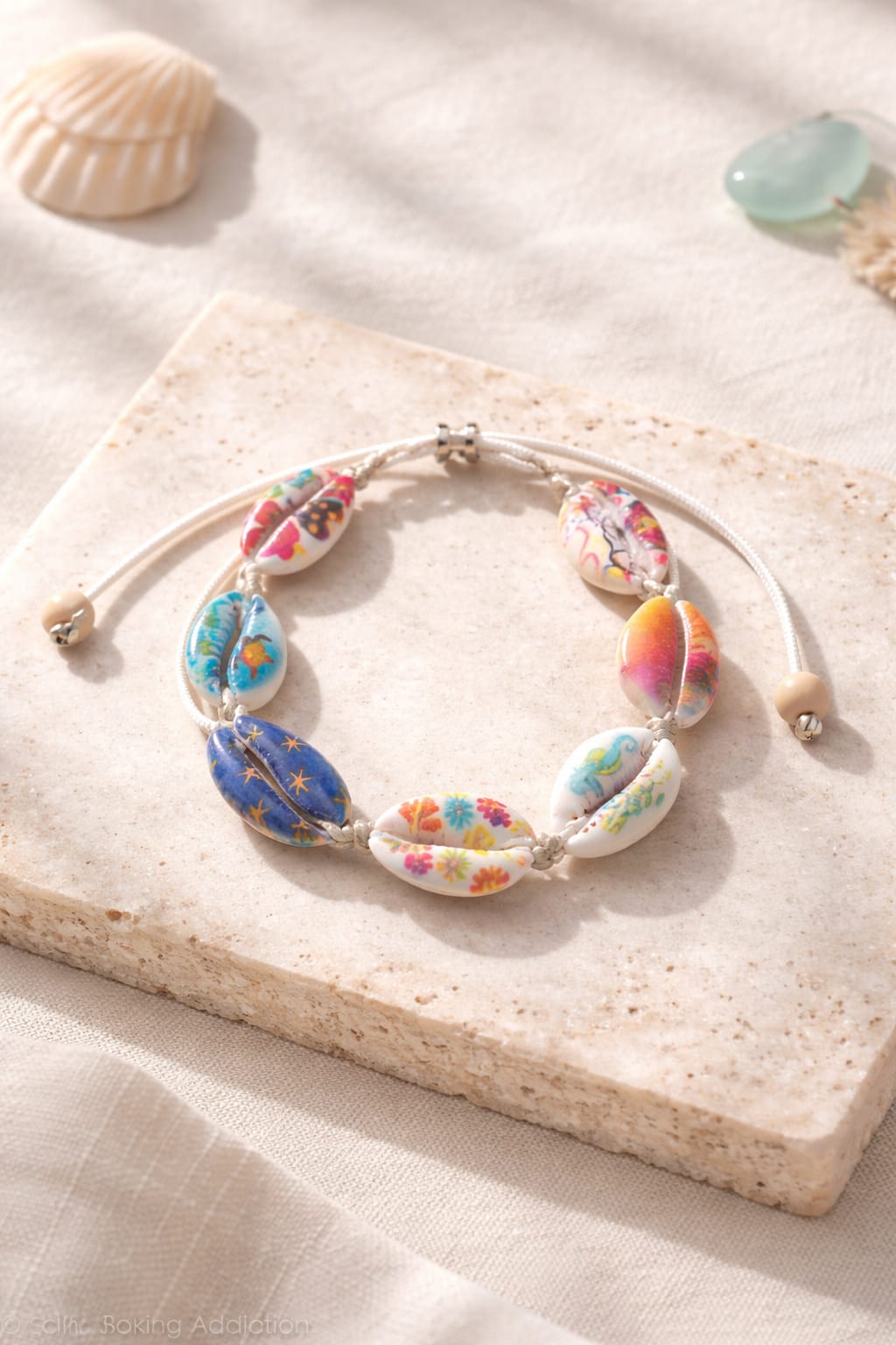 Ideal para quem busca uma peça artesanal, autêntica e que combina com roupas casuais ou praianas Os búzios da pulseira são verdadeiros e receberam pintura manual com motivos florais e minimalistas em tons vibrantes. A peça tem cordão resistente e um fecho que facilita o ajuste ao pulso, oferecendo conforto para o dia a dia. É uma joia que valoriza o artesanato local e traz um toque de cor para qualquer look.