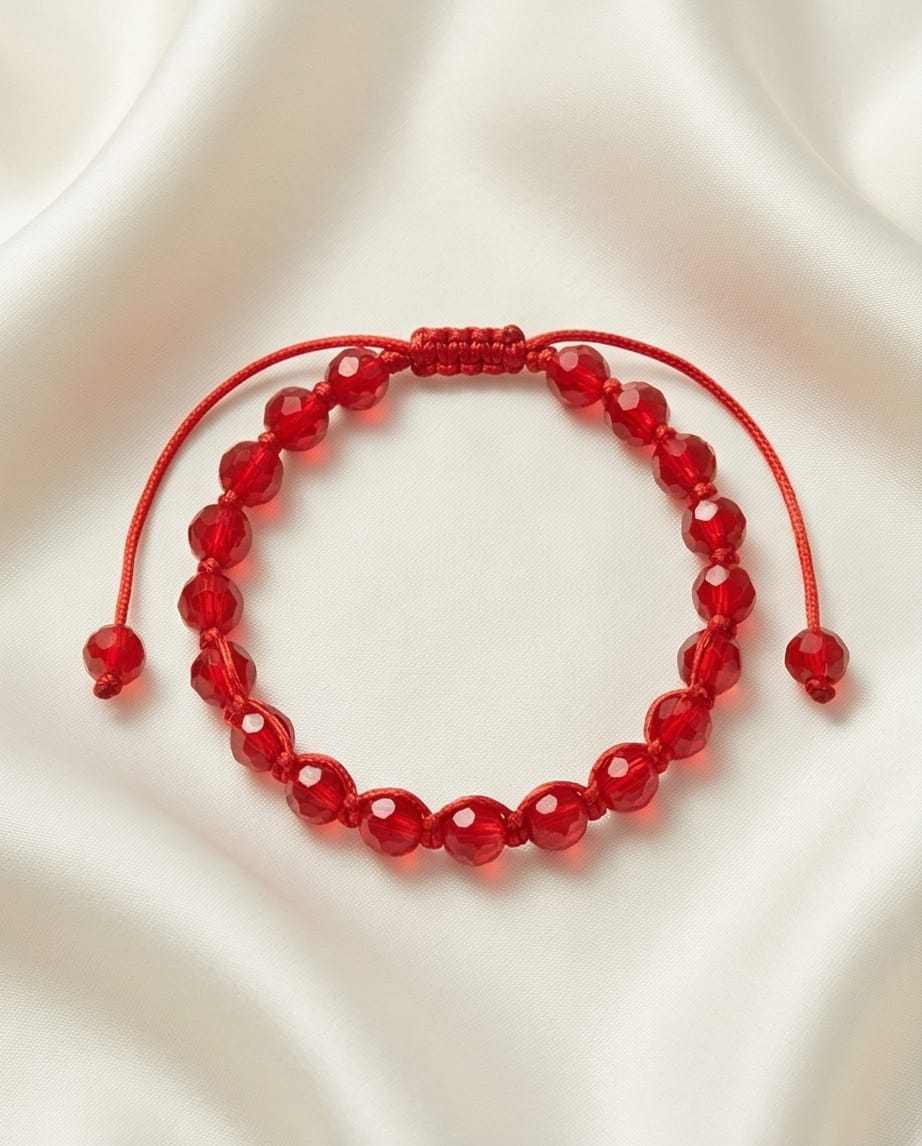 Uma pulseira delicada com cristais vermelhos que adiciona charme e cor ao seu visual com ajuste fácil.