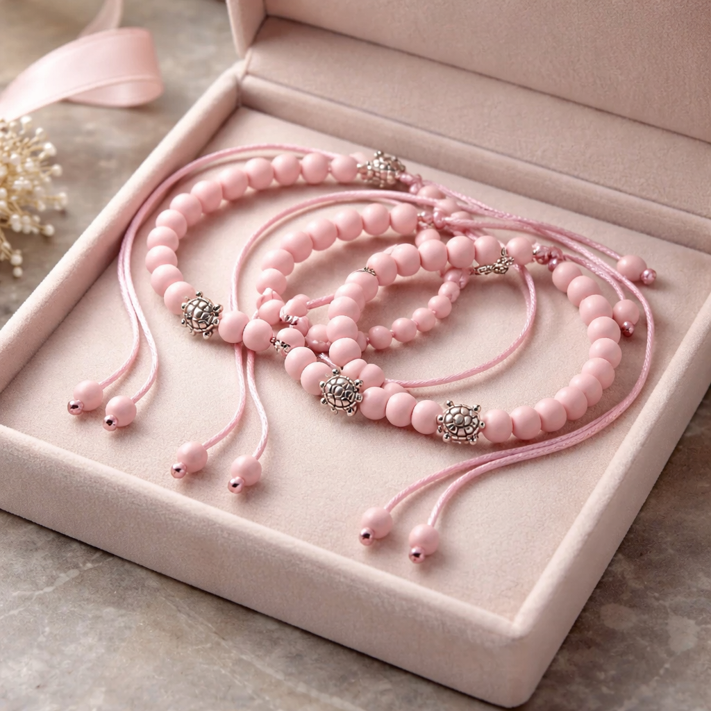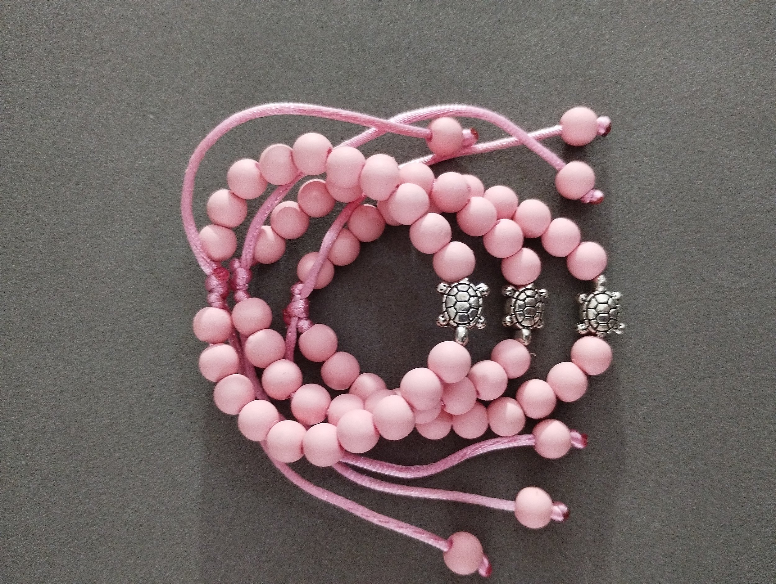 Pulseira em contas emborrachadas com detalhe de tartaruga - unidade