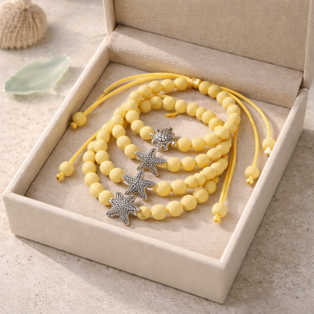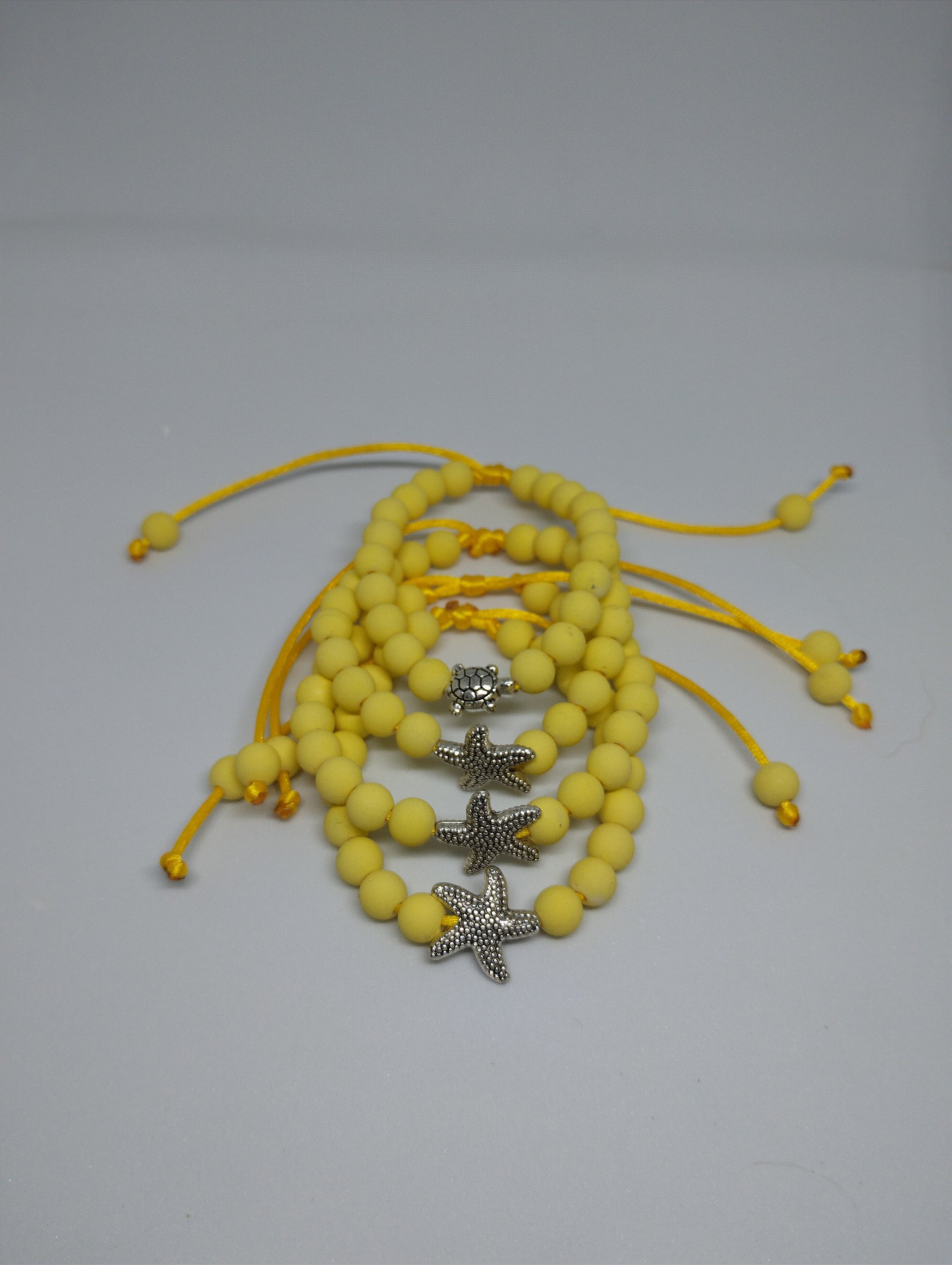 Pulseira em contas emborrachadas e detalhe estrela do mar - unidade